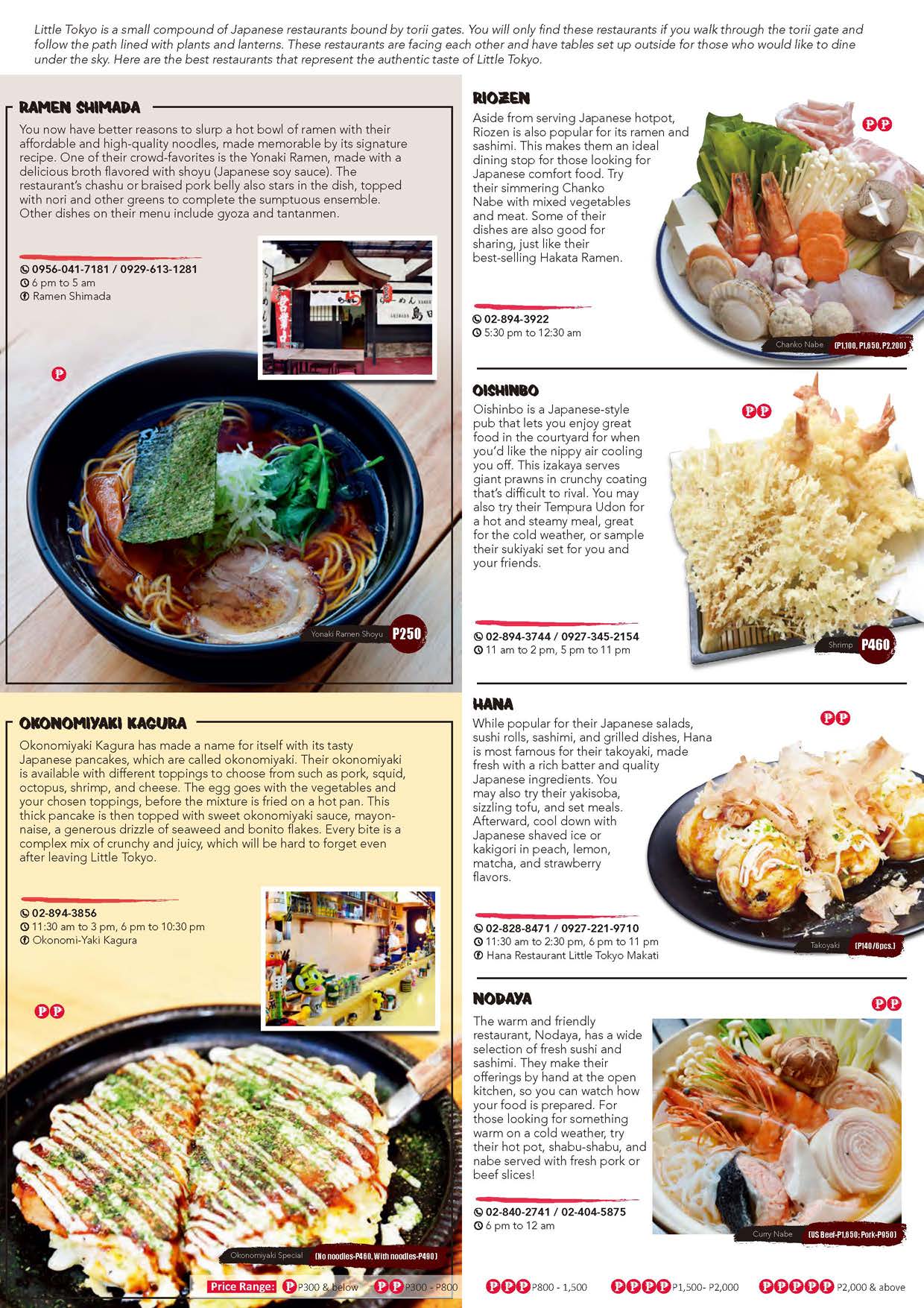 TREET – A bustling piece of Japan in Makati, Little Tokyo is home to a Japanese food community that replicates the ambiance of the lantern-lit dining alleys in Japan. It welcomes not only the homesick Japanese but also curious locals and expats that are looking for good Japanese fare or an izakaya experience after work. In this issue, we revisit Little Tokyo and a new community of restaurants that have sprouted around this iconic neighborhood.