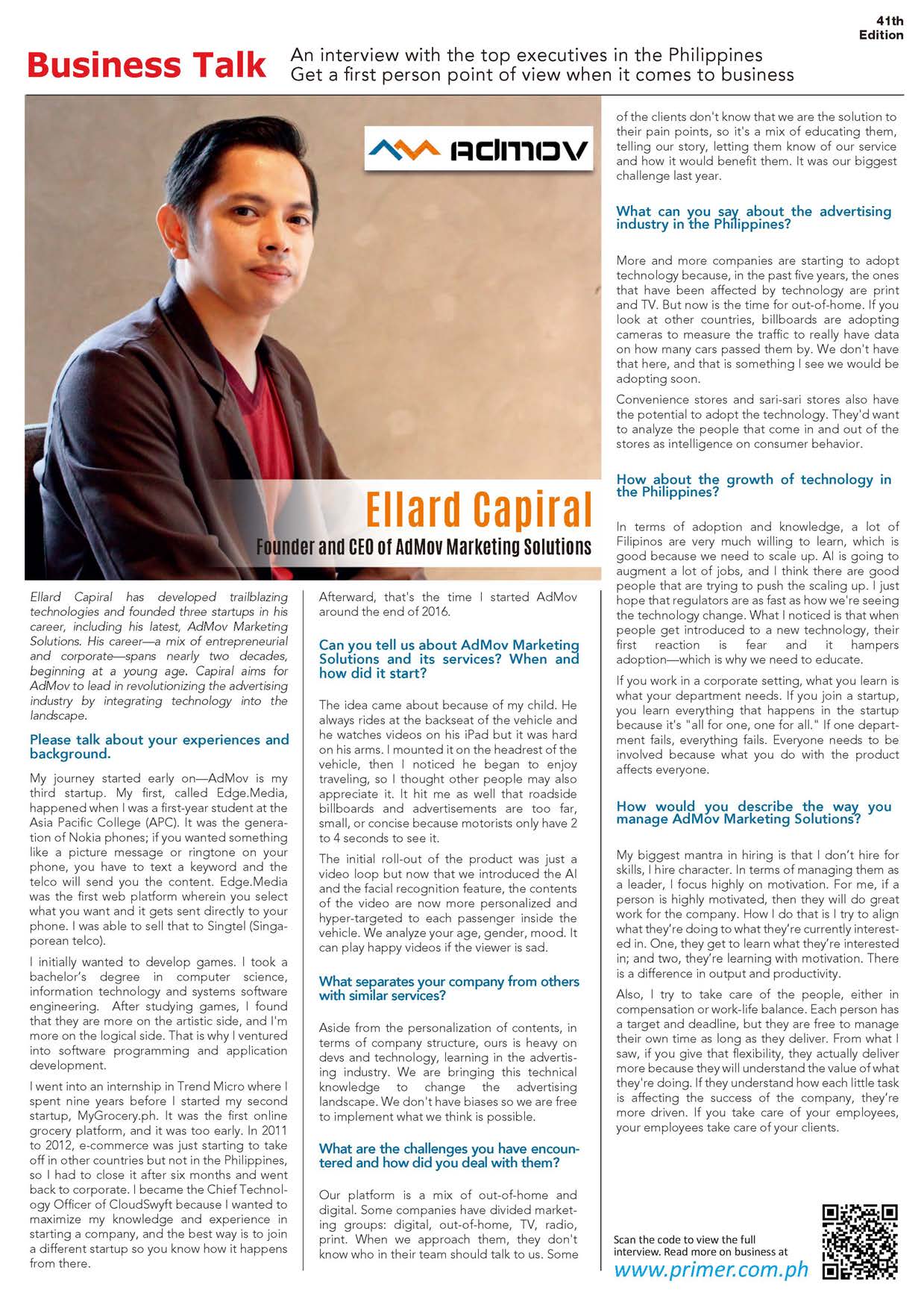 We are now accepting advertisement placement for our Issue. Give us a call at 02-836-8381 or email us at sales@primer.ph