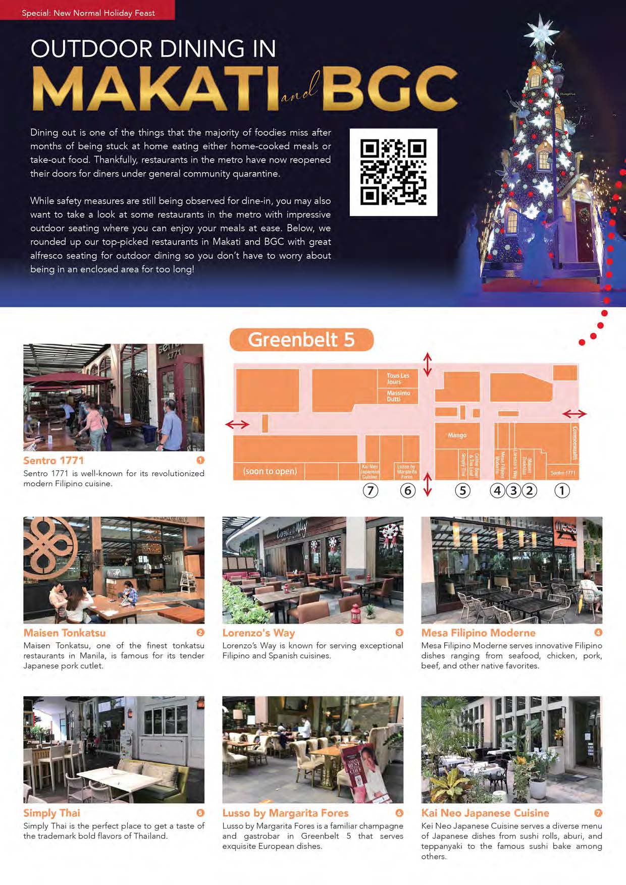 If you miss dining out, we also provided a list of restaurants around Makati and BGC with alfresco or outdoor seating for better air circulation and social distancing.