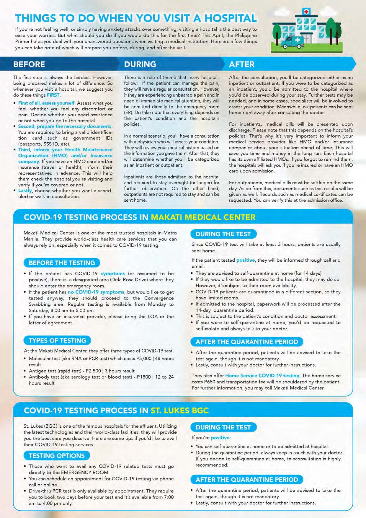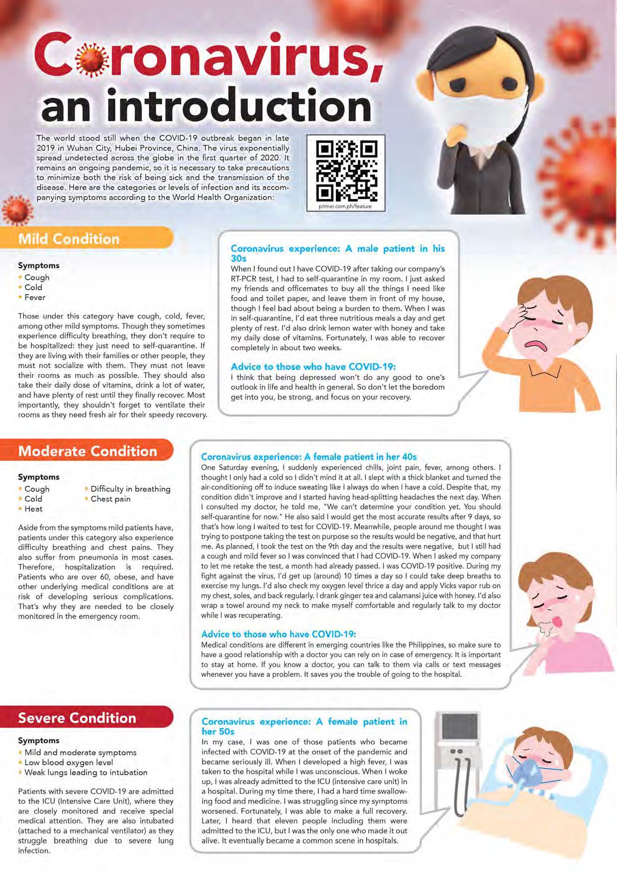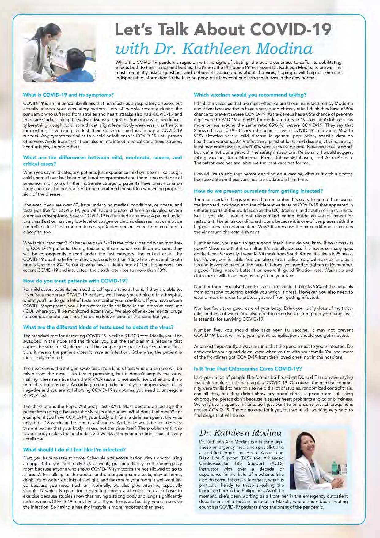 SPECIAL FEATURE – The COVID-19 pandemic rages on with no sign of abating, consequently affecting millions of Filipinos and thousands of businesses and other establishments across the country. Fortunately, we could be seeing the light at the end of the long, dark tunnel after over a year of wrestling against this deadly contagion with the development of several coronavirus vaccines by international pharmaceutical companies. In the meantime, as we wait for our share of the much-coveted vaccines, we at Philippine Primer continues to inform the public by releasing the latest news, updates, and developments concerning the virus and its effects on the Filipino people. In this issue, we’re telling you useful tips on how to avoid this dreaded disease as well as indispens-able information you might need in case you get infected.