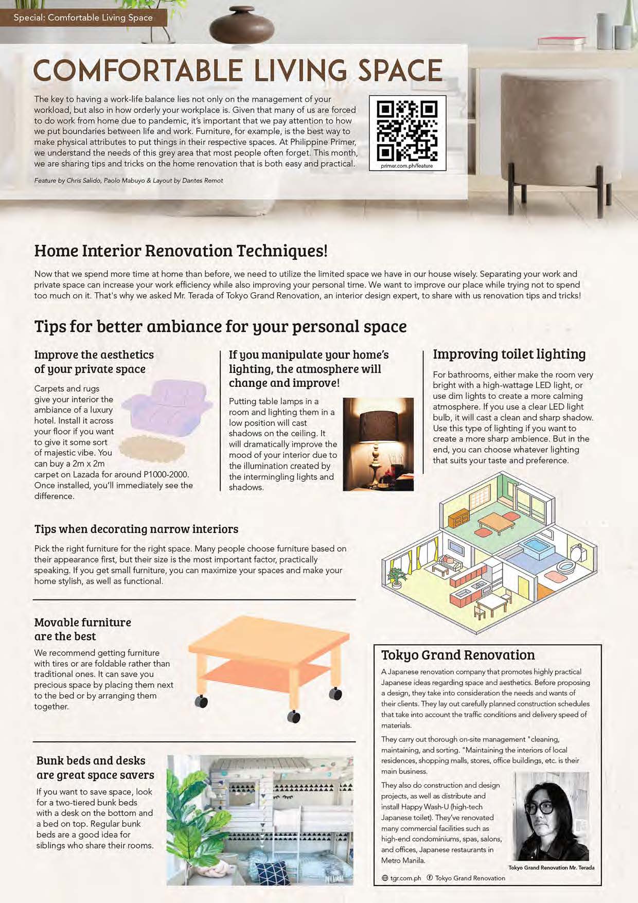 SPECIAL FEATURE – The key to having a work-life balance lies not only on the management of your workload, but also in how orderly your workplace is. Given that many of us are forced to do work from home due to pandemic, it’s important that we pay attention to how we put boundaries between life and work. Furniture, for example, is the best way to make physical attributes to put things in their respective spaces. At Philippine Primer, we understand the needs of this grey area that most people often forget. This month, we are sharing tips and tricks on the home renovation that is both easy and practical.