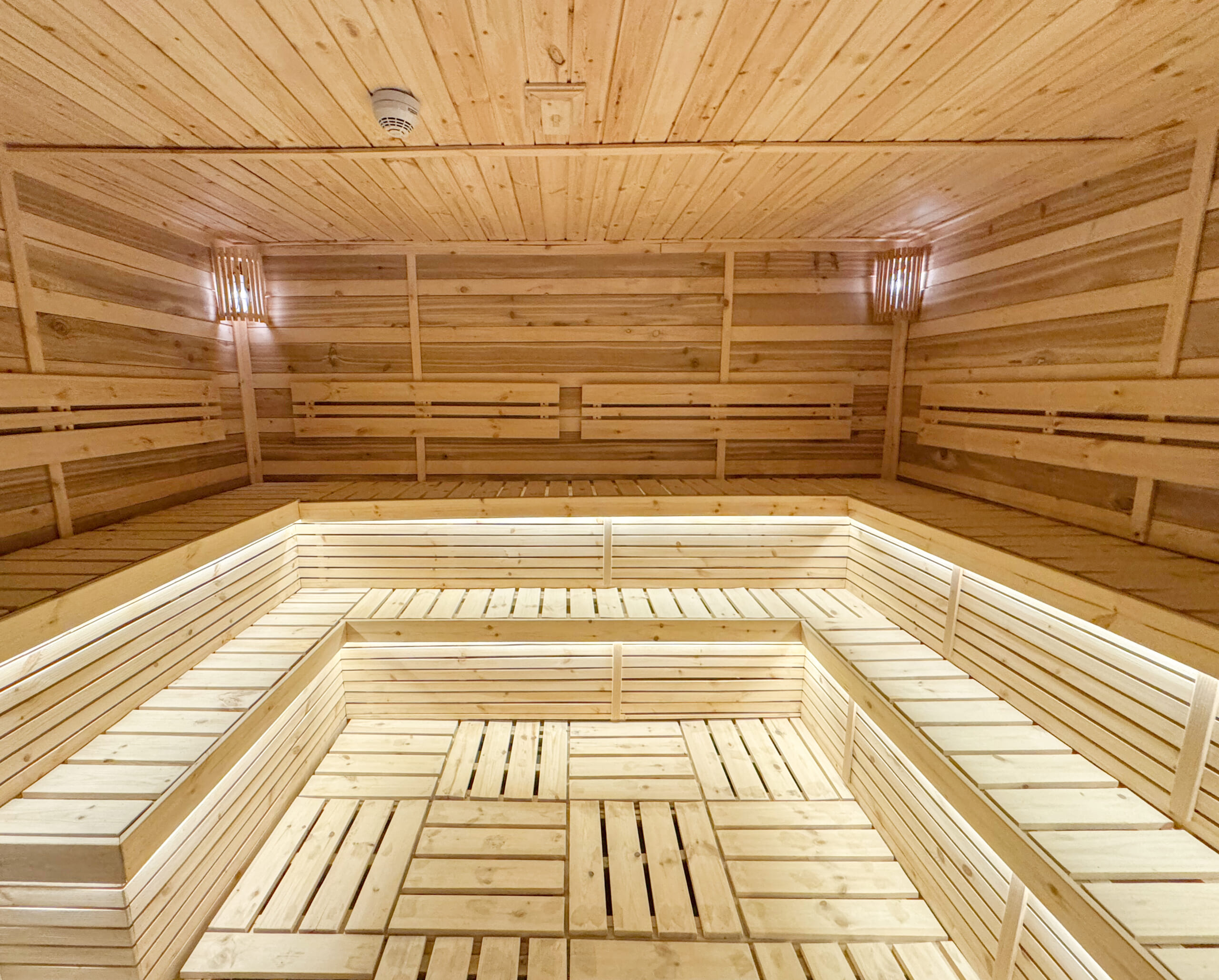 This is followed by access to the spa’s sauna facilities, which support detoxification and improved circulation. Guests may choose between a dry sauna lined with aromatic spruce and pine, offering a calming, wood-scented heat, or a steam sauna, where humid warmth helps hydrate the skin and provides relief for the respiratory system.