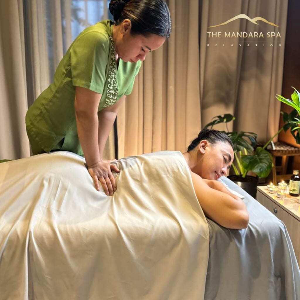For guests seeking focused bodywork, the Mandara Signature Massage remains a core offering. Available in several durations—75 minutes at Php 1,500, 90 minutes at Php 1,800, and two hours at Php 2,300—this massage features calming, rhythmic strokes enhanced by head pad therapy and the spa’s signature blend of organic olive and aromatic oils. The result is a deeply soothing treatment that releases tension while encouraging full-body relaxation.