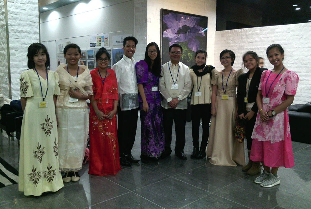 The Philippine delegation to the Asian International Children’s Film Festival 2015 in traditional Filipino attire during the Final Selection stage of the program held in Kitami City, Hokkaido, Japan.