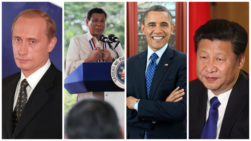 A LINK? Could our decision to open up economic ties with China and Russia lead to better relations between these countries and the U.S.? From left to right: Russian President Vladimir Putin, Philippine President Rodrigo Duterte, U.S. President Barack Obama, and Chinese President Xi Jinping. Images grabbed from Presidential Communications Operations Office, Foreign Office of London on flickr, White House on flickr, and Wikimedia Commons