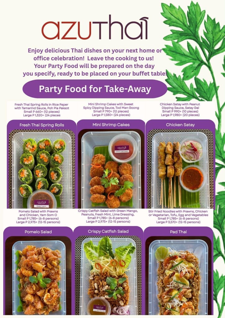 Azuthai elevates your celebrations with a vibrant selection of Thai dishes crafted for convenient take-away. Ideal for home gatherings or office parties, these beautifully prepared trays bring fresh, bold Thai flavors straight to your buffet table.