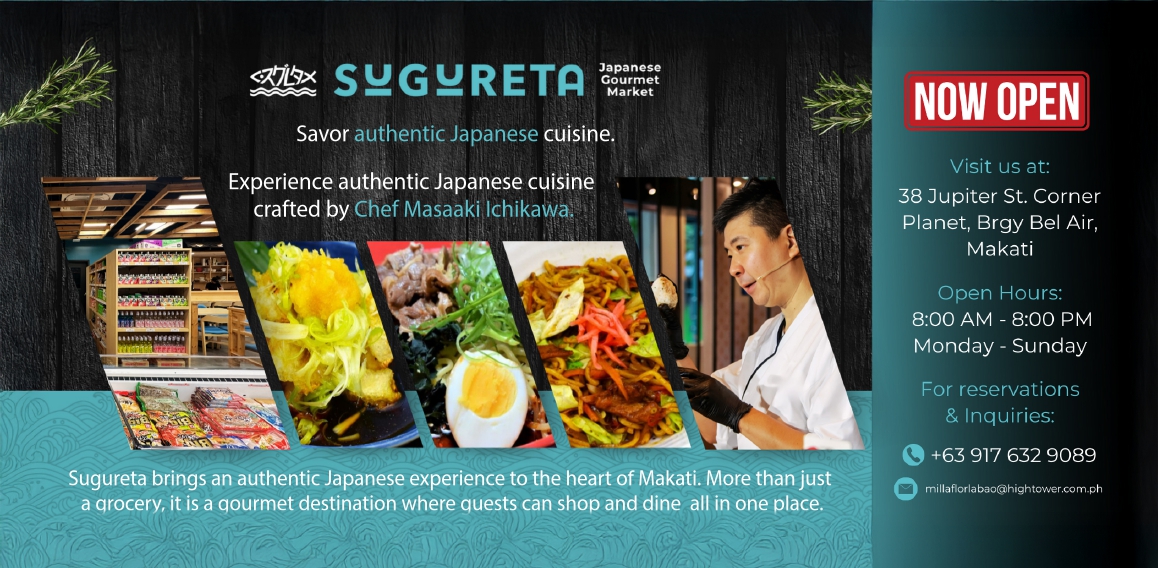 Now open at 38 Jupiter Street corner Planet, Brgy. Bel-Air, Sugureta is more than a gourmet market, it is a destination where guests can shop for premium Japanese ingredients and enjoy expertly prepared dishes in one welcoming space.