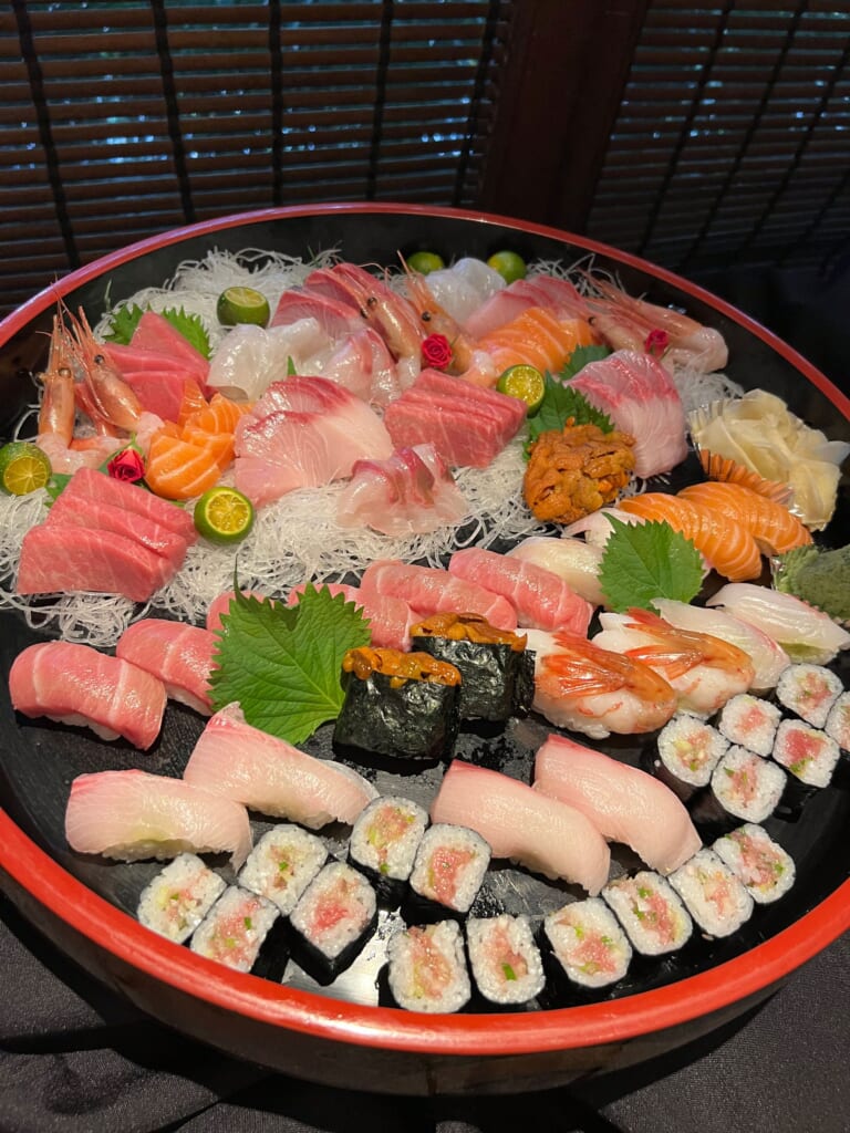 The Special Sashimi Boats showcase an exquisite selection of Hontoro, Chutoro, Hamachi, Kanpachi, Uni, Tai, Salmon, and Amaebi. The Small Sashimi Boat includes 42 pieces, ideal for 6–8 persons, and is priced at Php 20,000 + 5% service charge. For bigger celebrations, the Large Sashimi Boat features 72 pieces, good for 8–10 persons, priced at Php 34,000 + 5% service charge.