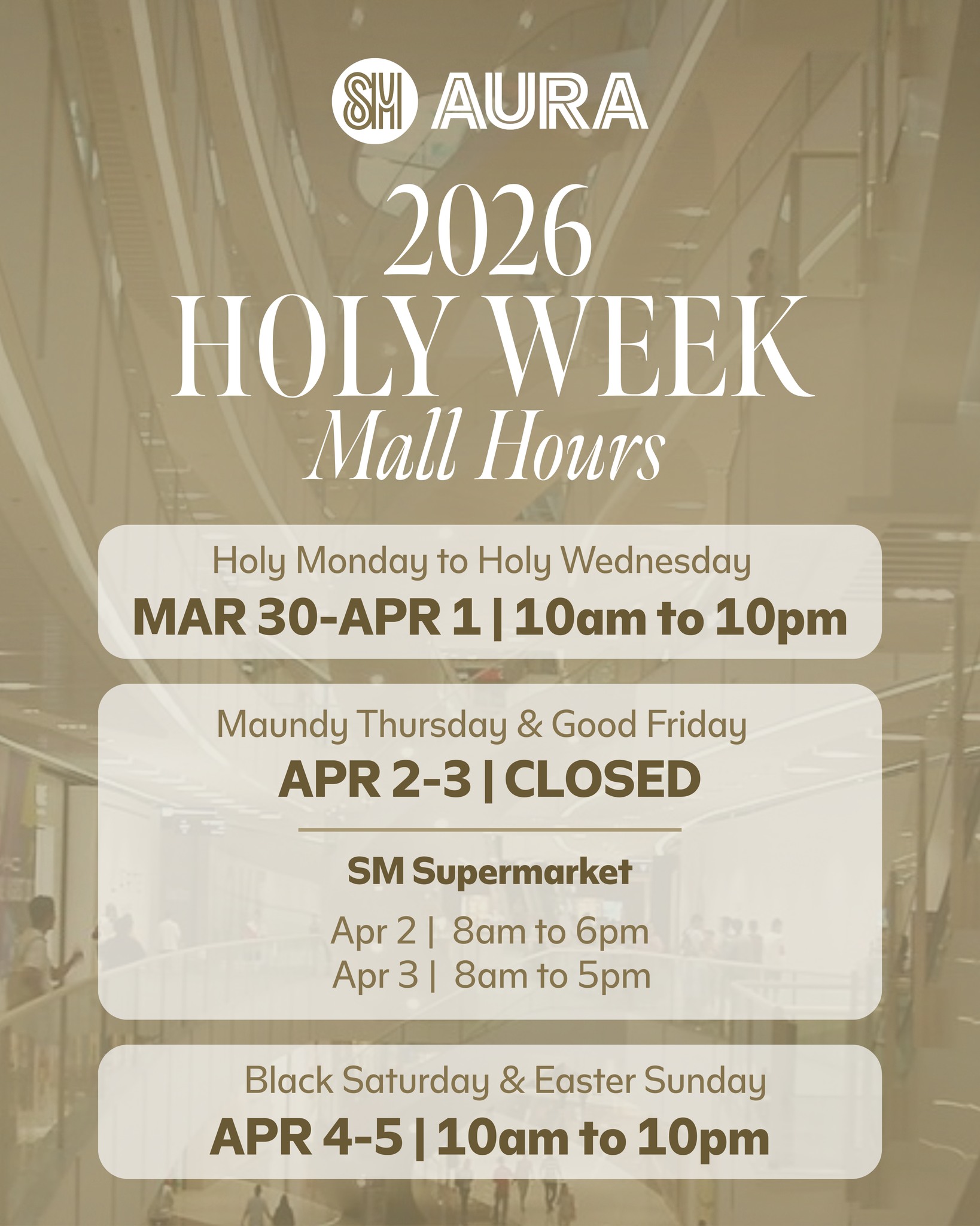 GUIDE: Adjusted Mall Hours for Holy Week 2026