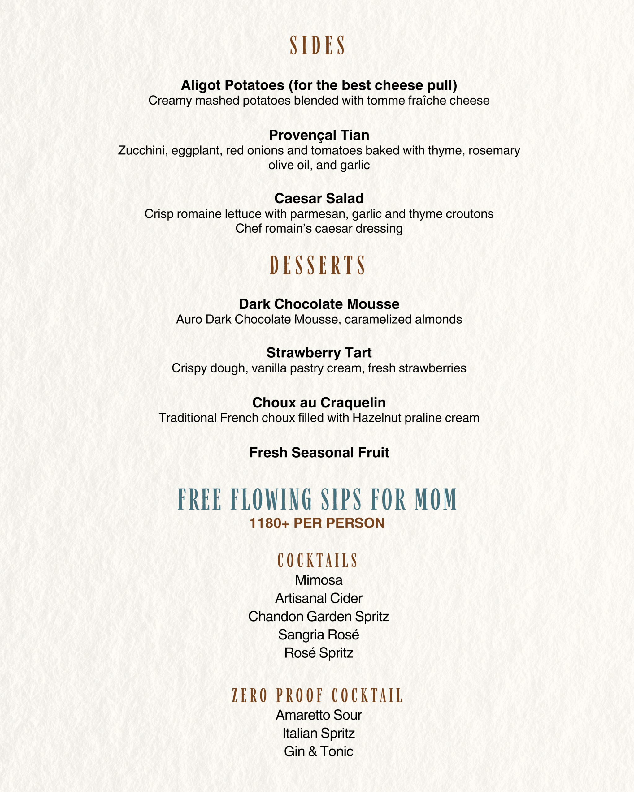 Priced at Php 2,990+ per person, La Table de Maman features a brunch buffet of elegant favorites such as Burrata Cheese, Truffled Deviled Eggs, Smoked Salmon Eggs Benedict, Quiche Lorraine, French artisanal cheeses, freshly baked viennoiseries, Roasted Yellow Chicken, Seafood Rigatoni, Steak & Frites, sides, and sweet indulgences.