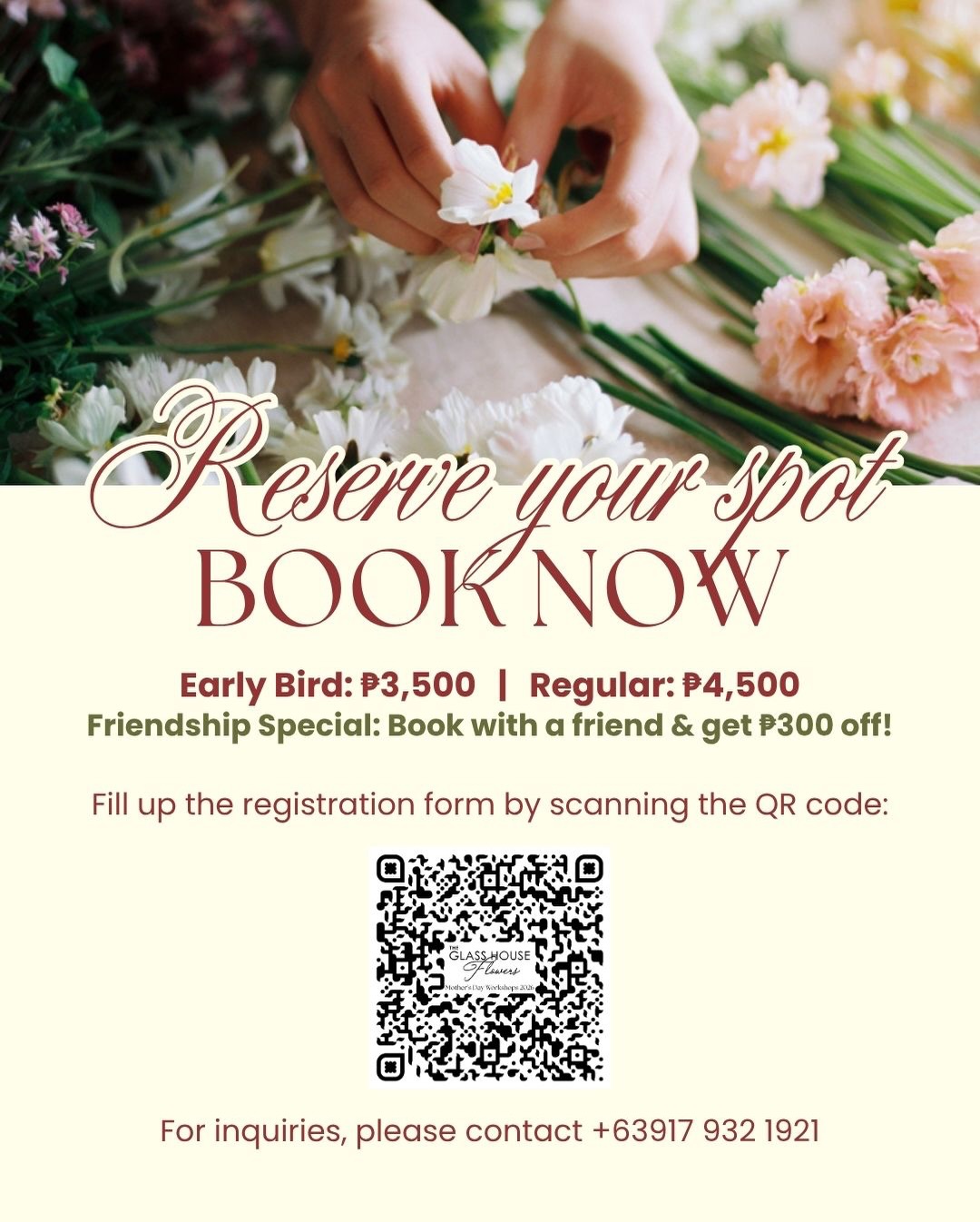 Rates are priced at Php 3,500 for early bird and Php 4,500 for regular slots, with a friendship special of Php 300 off when booking with a friend. Each session is limited to 12 slots only. To join, guests may register by scanning the QR code or inquire through Viber/WhatsApp at 0917-932-1921.