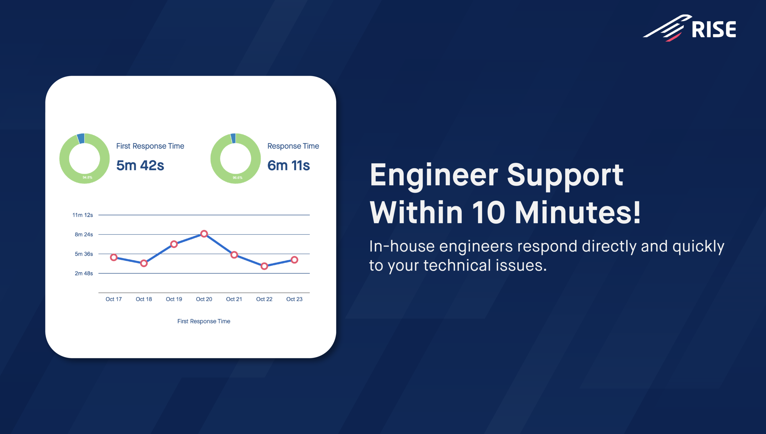 RISE engineers who design, build, and manage our network can respond to your technical issues within 15 minutes. We constantly monitor the network and quickly respond and contact you if there is any possibility of disruption to your connection.