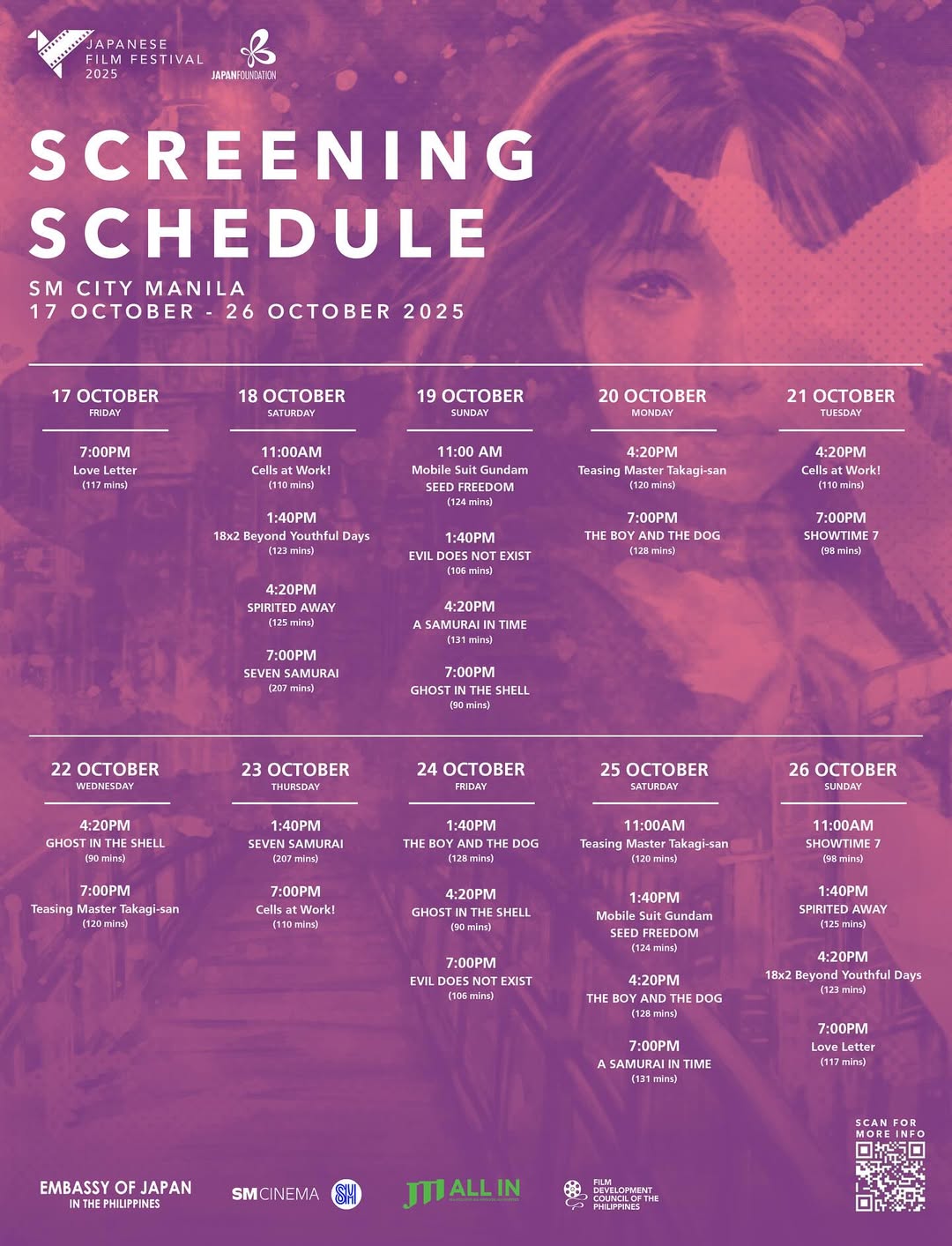 SM City Manila Screening Schedule / IMAGE from Japan Foundation Manila’s Instagram account