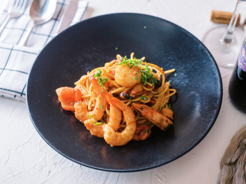 Another must-try is Da Gianni’s Spaghetti Shrimps and Scallops, crafted in a Mediterranean style that perfectly suits local tastes. The dish is enriched with black olives and capers simmered in a tomato sauce, creating a balance of fresh, savory flavors.