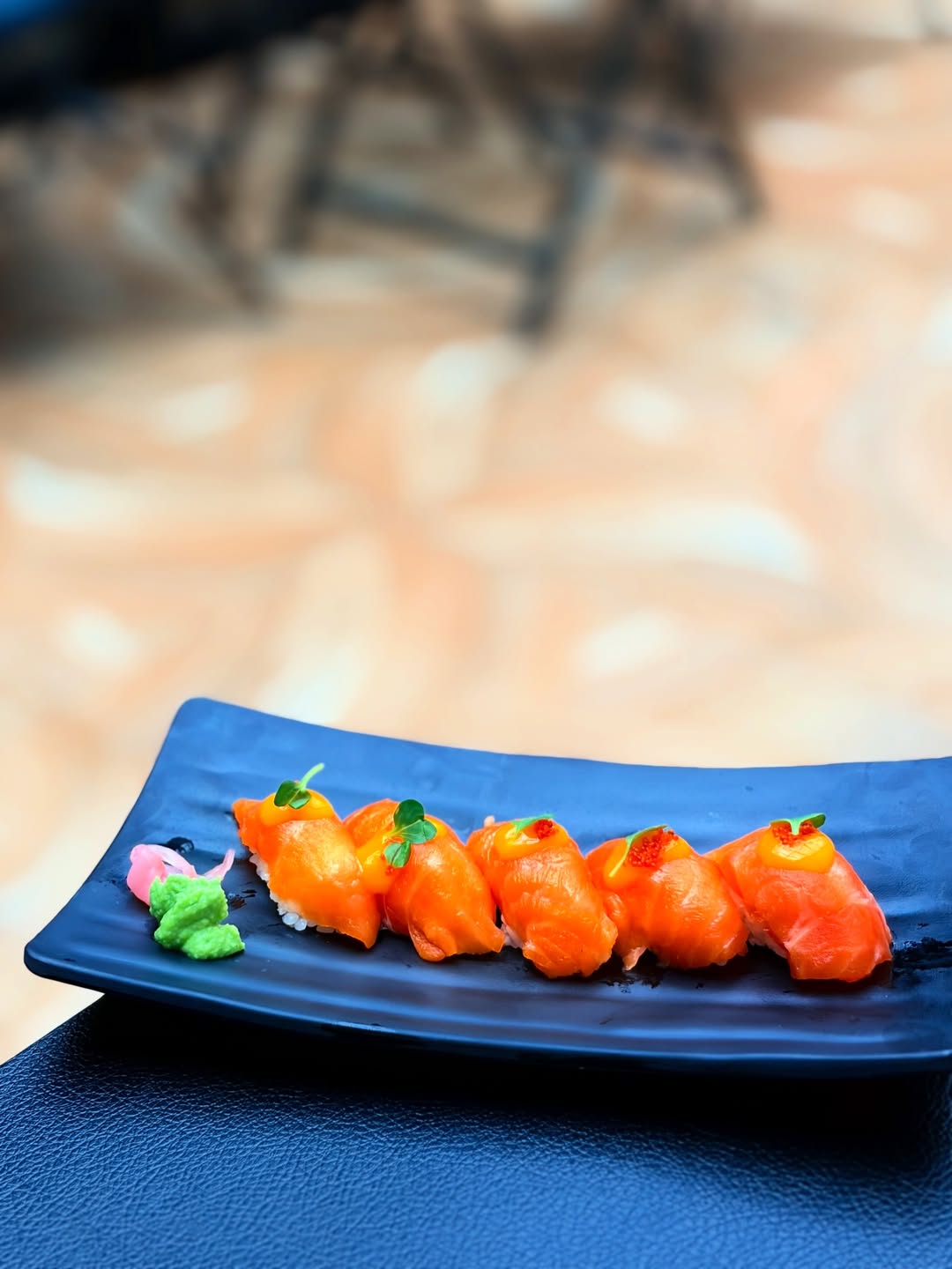 Another standout is the Salmon Harasu Nigiri (Php 490, 5 pcs.), made with lightly torched salmon belly over seasoned rice, topped with a subtle mango glaze, tobiko, and microgreens for a balance of richness and freshness.
