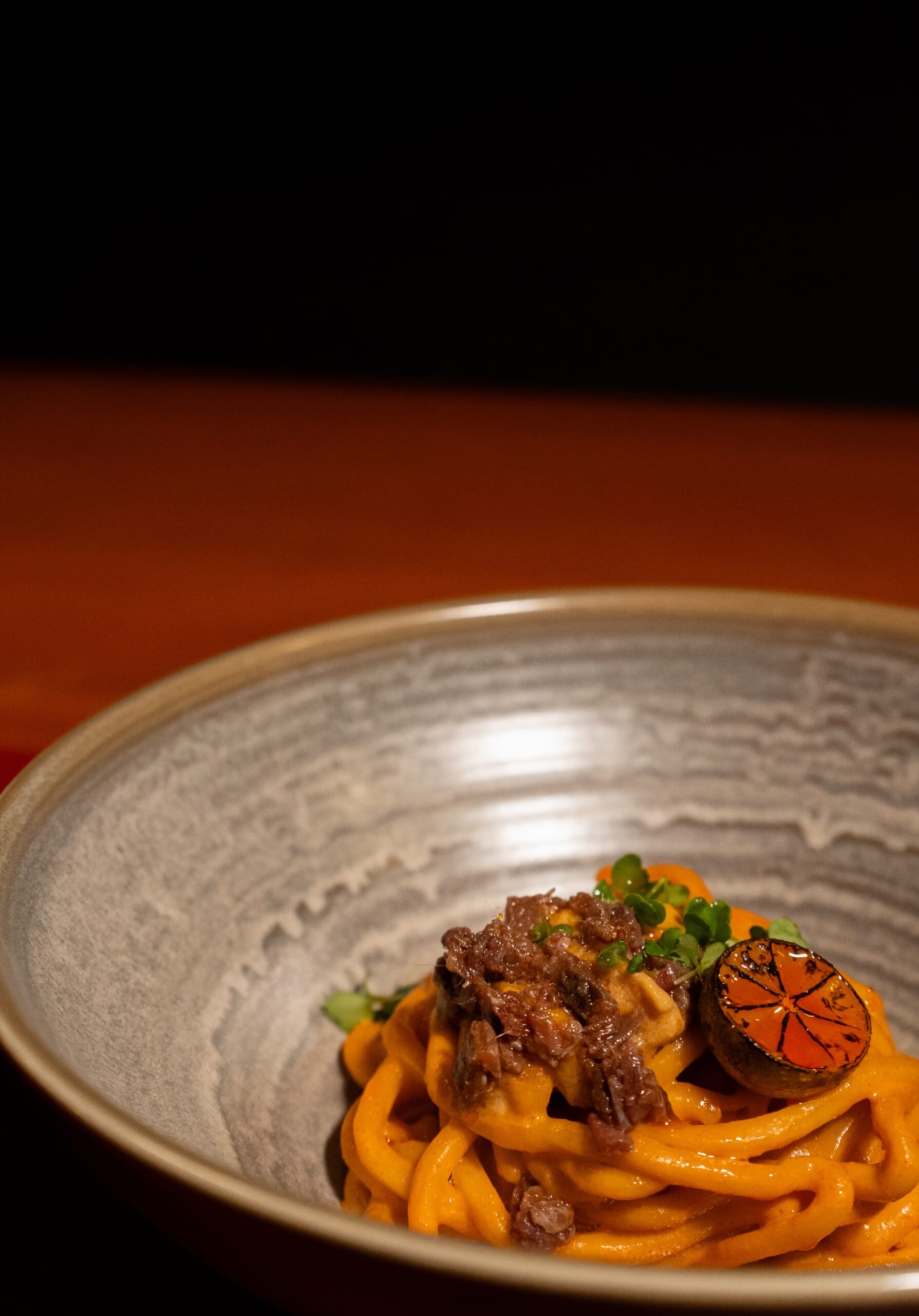 Another standout is the Crab Uni & Anchovy, presented as an udon dish that layers the briny sweetness of crab paste with the pronounced umami of sea urchin and anchovy.
