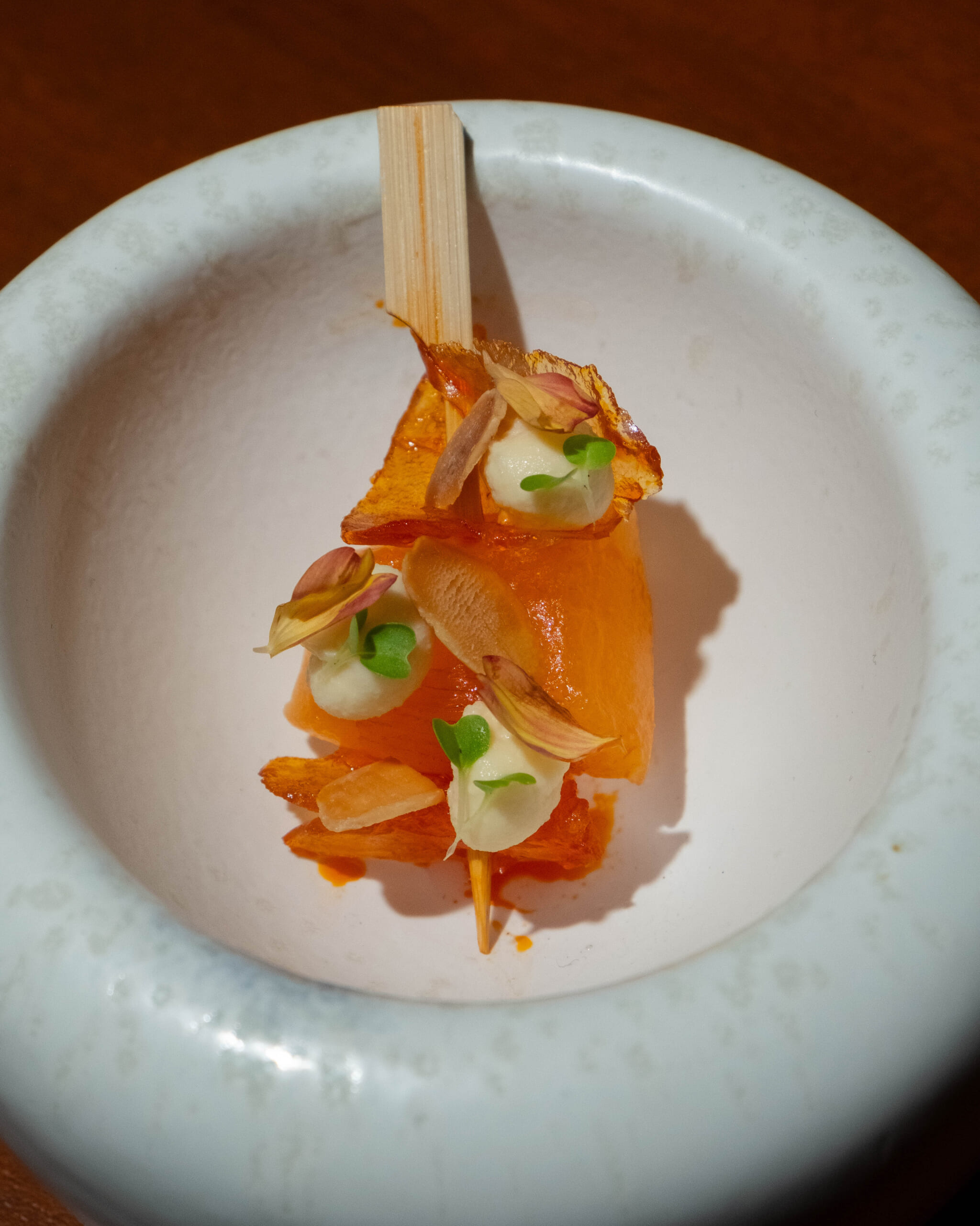 The Tartare features finely prepared pompano enhanced with kalamansi kosho. The citrus brightness of the calamansi adds lift to the dish, cutting through the natural richness of the fish, while the kosho or pepper lends subtle warmth, creating a fresh, well-balanced flavor profile.