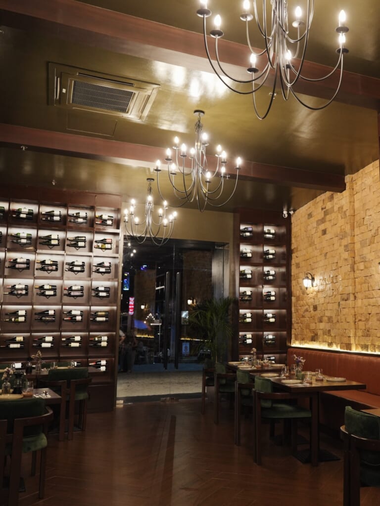From the moment guests step inside, they are greeted by an inviting atmosphere designed for relaxation and savoring good food. Wine bottles line the walls, hinting at the extensive selection that awaits: a thoughtful mix of reds, whites, and sparkling varieties that pair beautifully with the restaurant’s diverse menu.