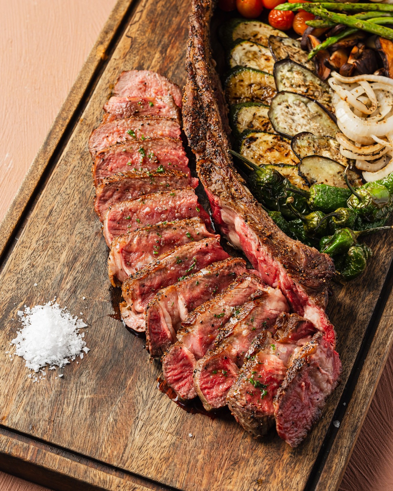 For those looking for something heartier and more indulgent, the US Beef Tomahawk is a standout choice. Weighing approximately 2.2 kilograms, this generously portioned cut is served with a rich garlic thyme butter sauce and a side of grilled vegetables.