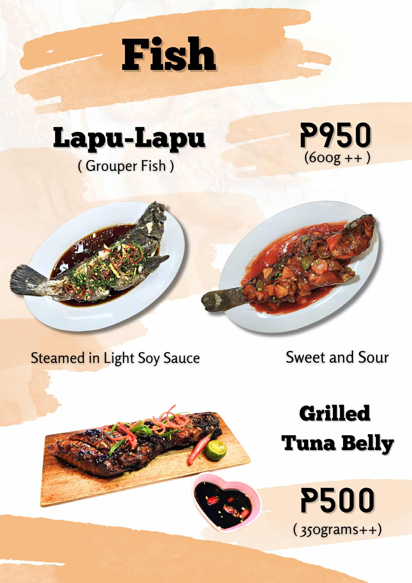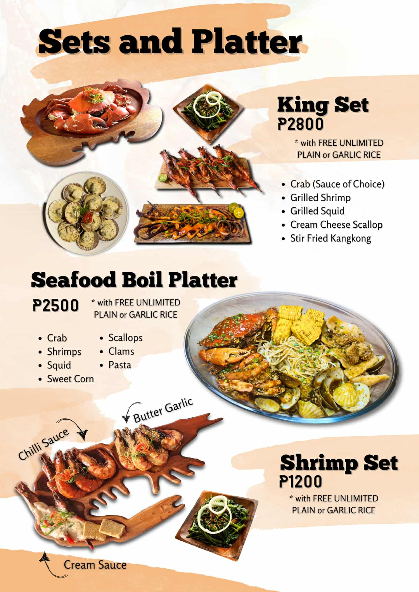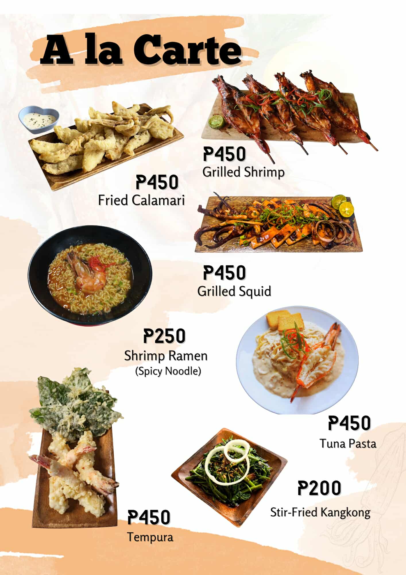 Popular favorites include Chili Crab (Php 270 per 100g), Butter Garlic Shrimp (Php 450 per 200-250g), and Lobster (Php 550 per 100g) with you choice of sauces from butter garlic, black pepper, and chili to cream and steamed. Each dish bursts with the natural sweetness of the day’s catch, complemented by house-made sauces.