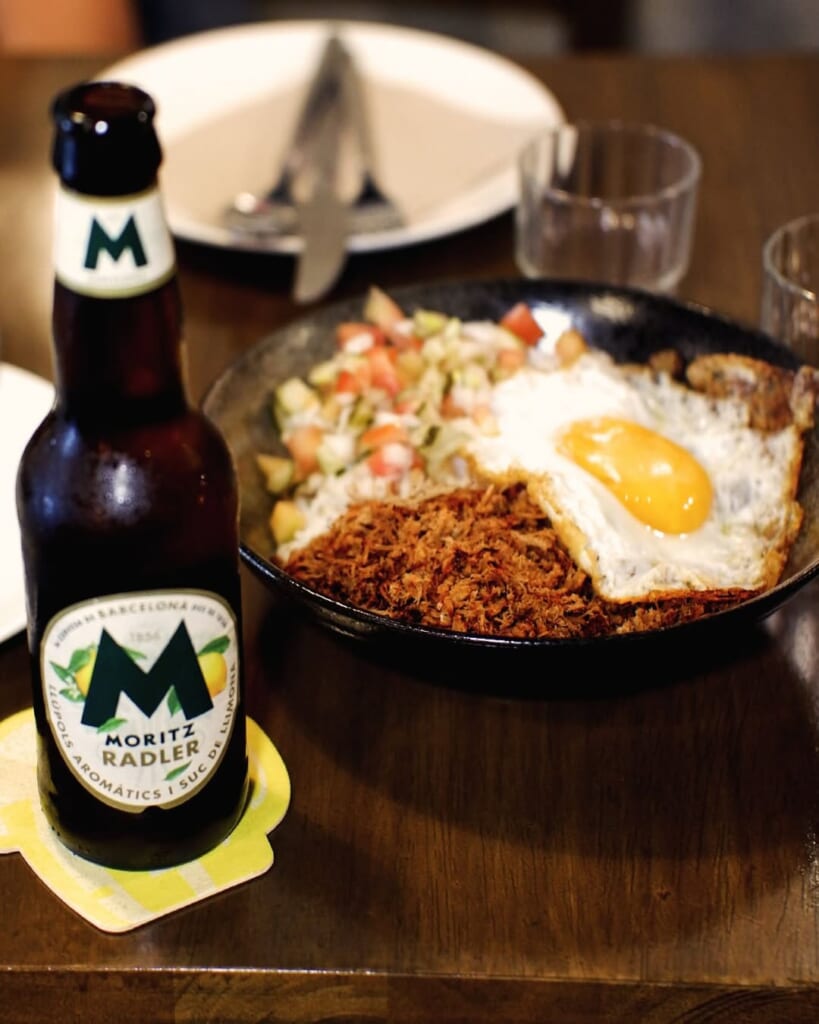 Another comfort staple on the menu is the Adobo Flakes Rice Bowl (Php 380), a soulful reinterpretation of a Filipino classic. Crispy adobo flakes top a steaming bowl of rice with egg, offering a satisfying mix of texture and savory depth. It’s even better when enjoyed with a cold bottle of Moritz Radler, making it a go-to combo for those looking to unwind.