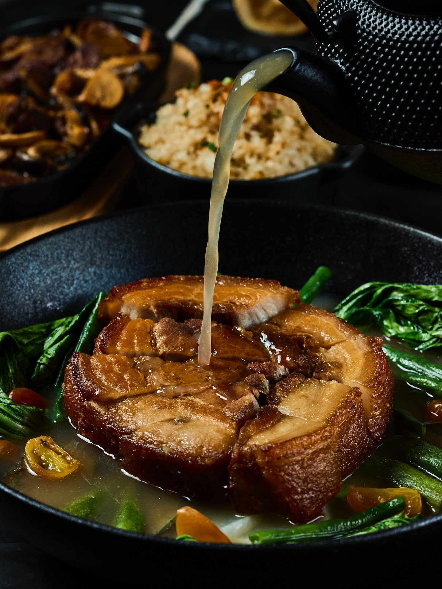 For those craving Filipino comfort with a twist, the Lechon Sinigang (Php 750) delivers tender crispy pork belly simmered in tangy tamarind broth with seasonal vegetables—warm, hearty, and ideal for cozy evenings.\