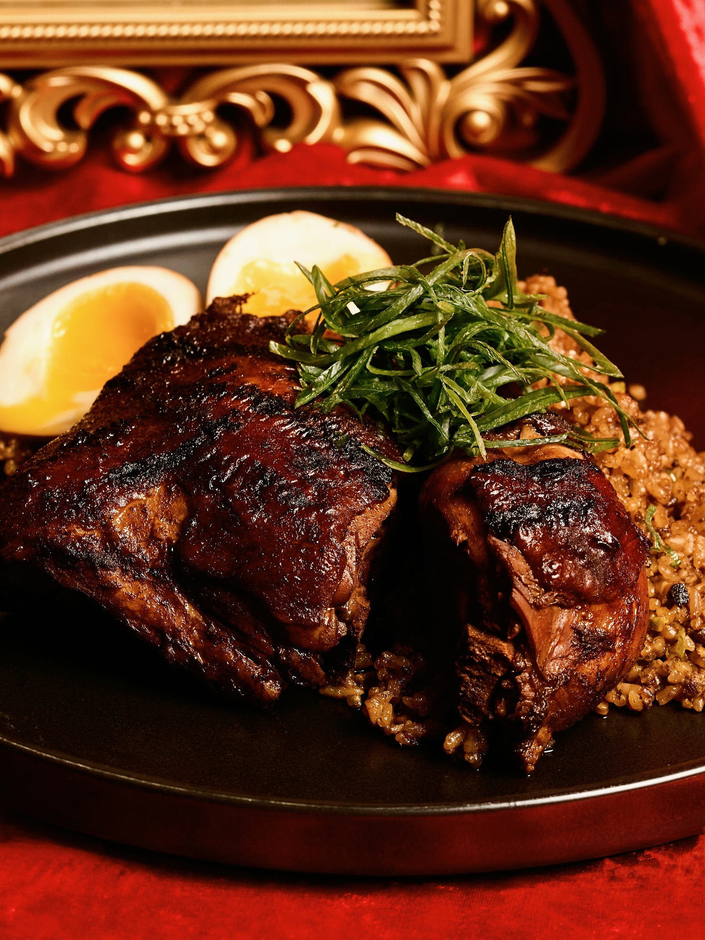 Another best-seller is the Smoked Chicken Adobo (Php 499), featuring smoky, savory chicken paired with a semi-boiled adobo egg and flavorful dirty rice enriched with bits of liver for added depth.