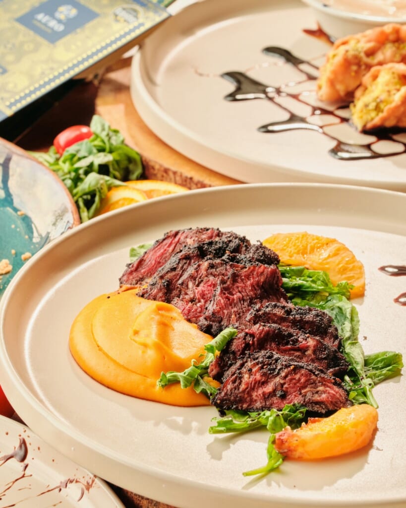 Craving some steaks? Their USDA Snake River Farms Wagyu Gold is available in ribeye or striploin, offering a rich, tender cut with beautifully balanced marbling. Each bite delivers deep, buttery flavor and a melt-in-your-mouth texture, making it a standout choice for steak lovers. What’s more, it is crusted with Auro Chocolate’s cacao powder then seared.