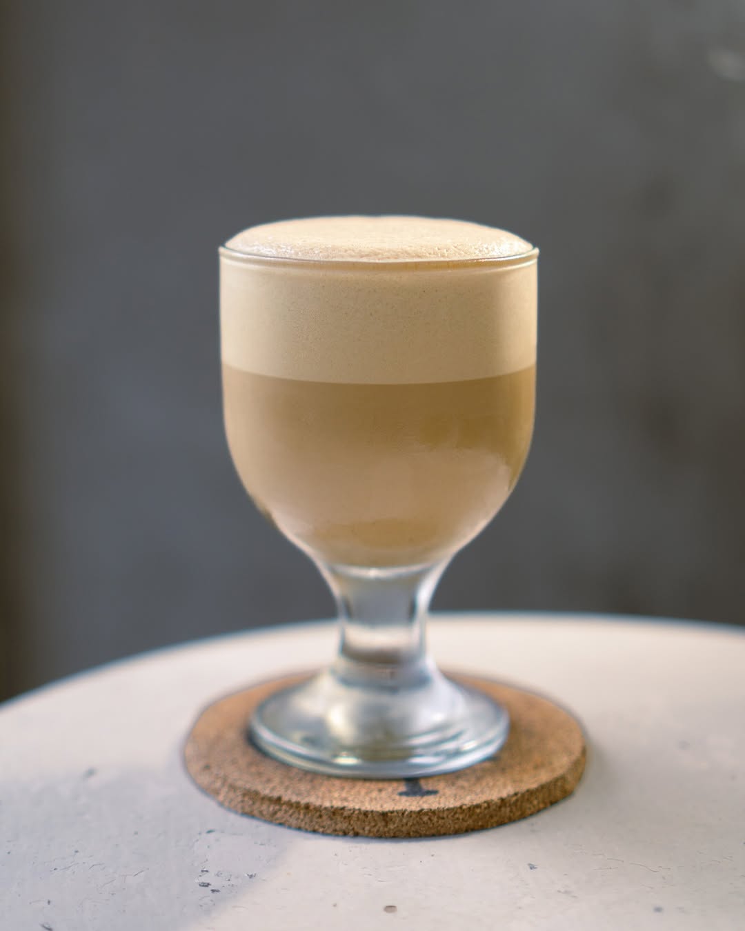 By daytime, the front of the space operates as a hip third-wave coffee shop, while cocktail service comes alive at the back in the evenings, creating two complementary experiences under one roof.