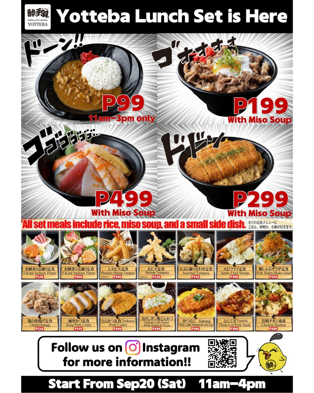 Starting September 20, Yotteba Izakaya Revolution kicks off an irresistible Lunch Set promo running daily from 11:00 a.m. to 4:00 p.m.