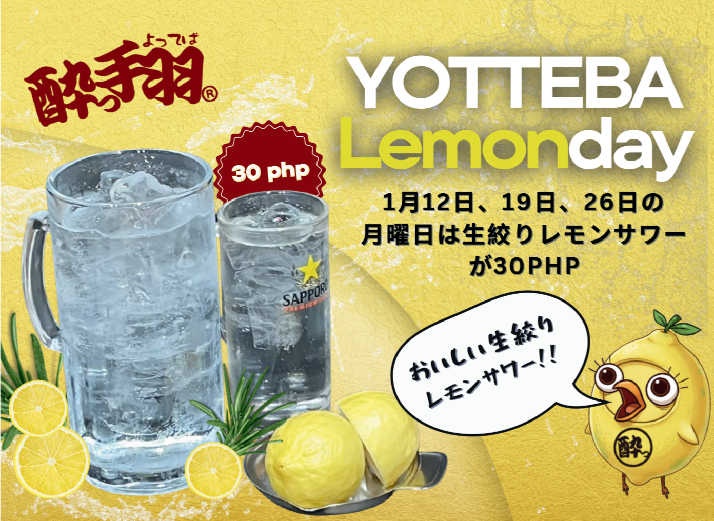 Another treat guests can look forward to is Yotteba’s Lemonday, a weekly promotion that makes Mondays something to celebrate. Every Monday, the restaurant offers its freshly squeezed lemon sour for only Php 30, giving diners a refreshing, citrusy drink that perfectly complements their izakaya favorites.