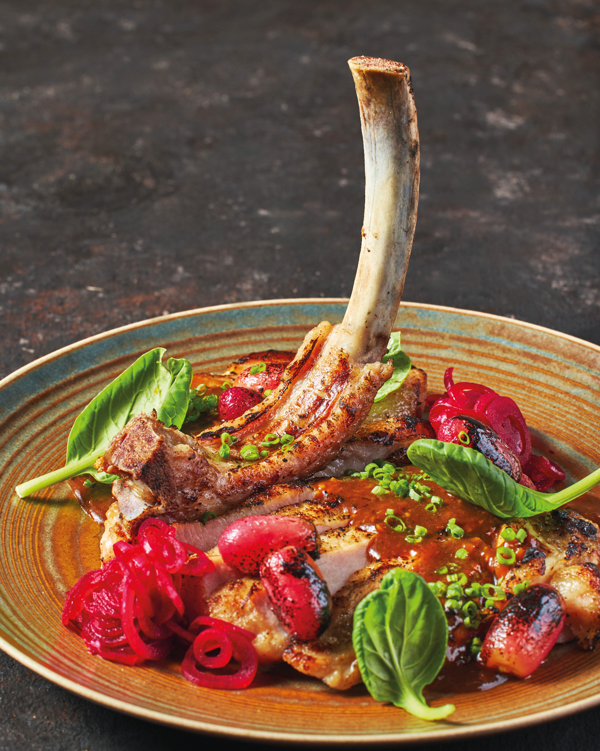 Another standout dish is their Grilled Pork Chop with fire roasted grapes, pickled onion, and lychee-hoisin sauce.