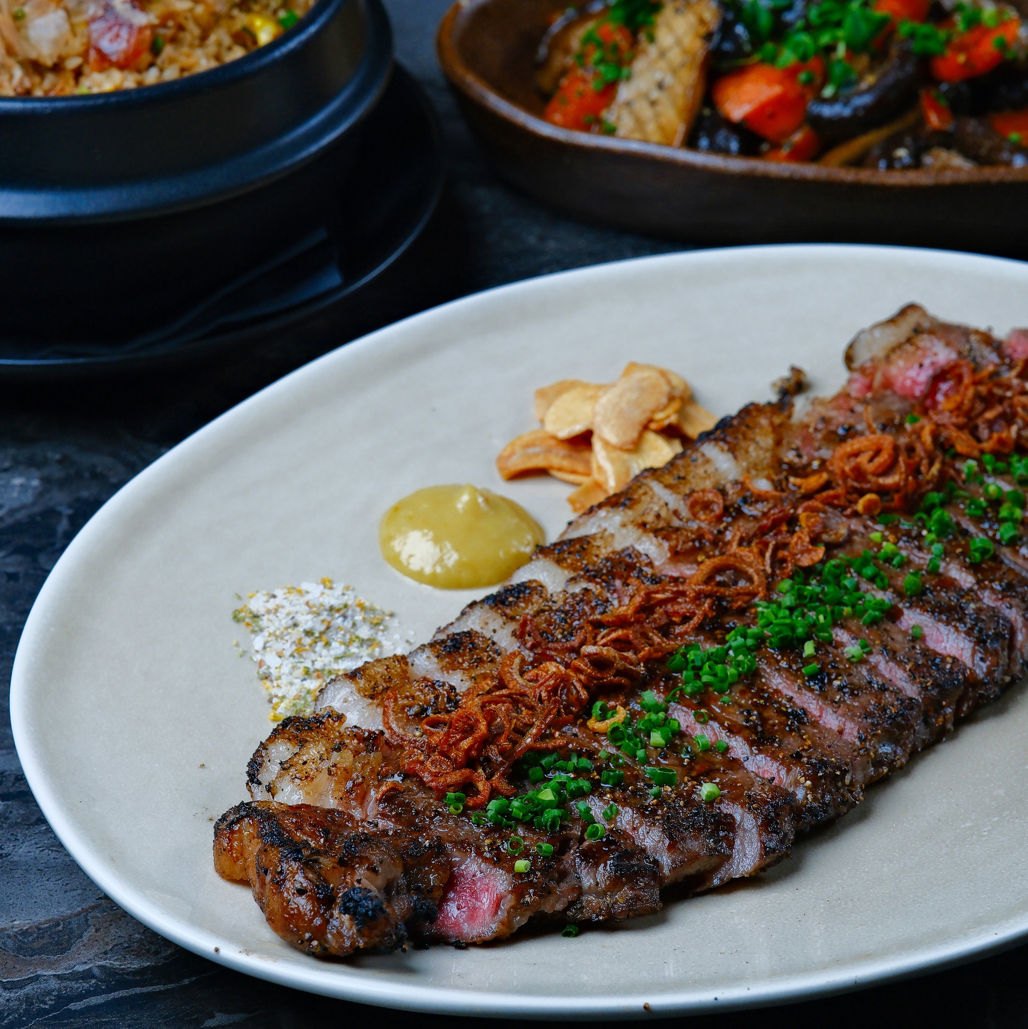 In addition to these selections, the restaurant also offers hearty steak options such as the Japanese Wagyu NY Striploin—a 350g F1 crossbreed cut—served with black pepper-roasted garlic sauce, garlic chips, and citrus salt for a well-balanced finish.