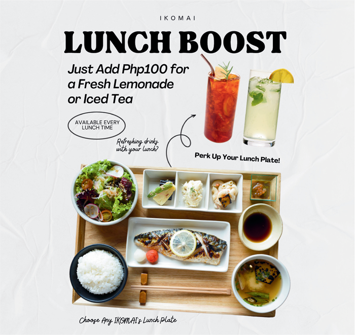 For those seeking a satisfying midday break, Ikomai brings something extra to the table with its Lunch Boost offer! Guests can elevate their lunch experience by adding just Php100 for a glass of fresh lemonade or iced tea, the perfect way to complement Ikomai’s hearty Japanese lunch plates.