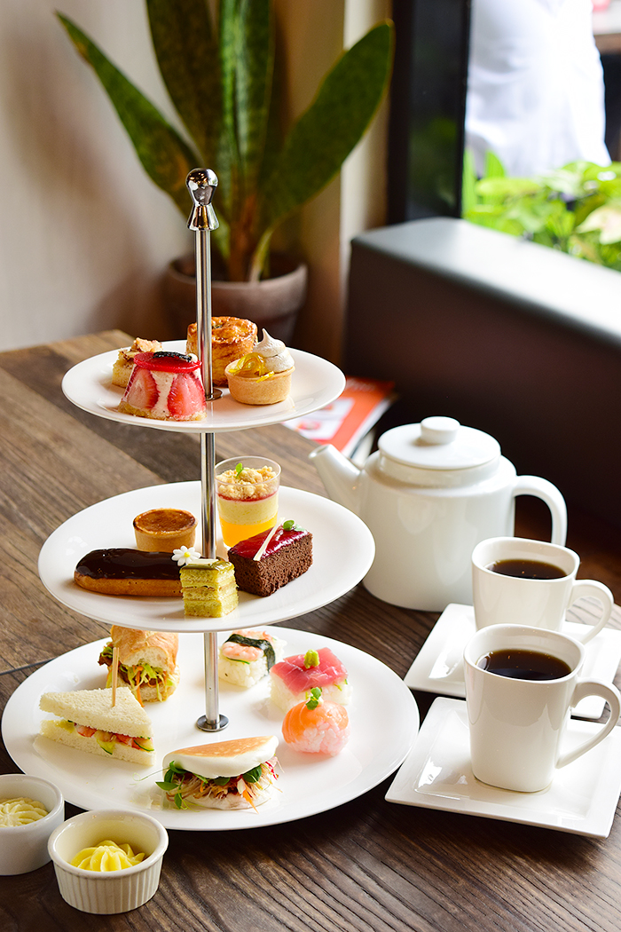 Highlights include the Karaage French Bread, featuring crispy fried chicken and shredded vegetables nestled in French bread, and the Ebi Sandwich, a combination of shrimp and vegetables between soft sliced bread. Both sandwiches are exclusive to the afternoon tea menu, making them a must-try for those looking to unwind with something unique and flavorful.