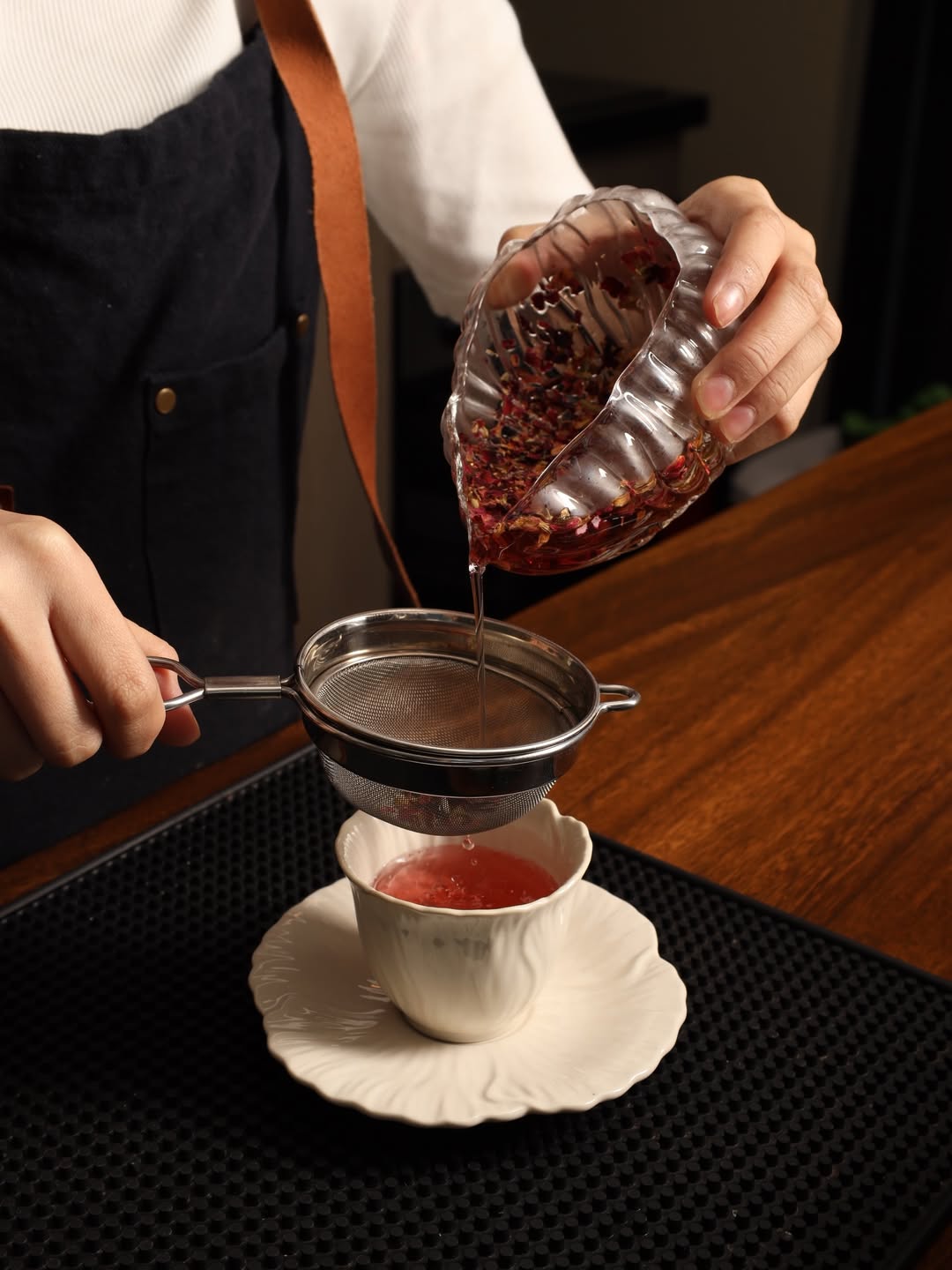 Some of its teas come from the misty gardens of Darjeeling, India, bringing with them the depth and character long associated with one of the world’s most celebrated tea-growing regions. Each cup is steeped with care, strained by hand, and then poured, highlighting the attention given to every stage of preparation.