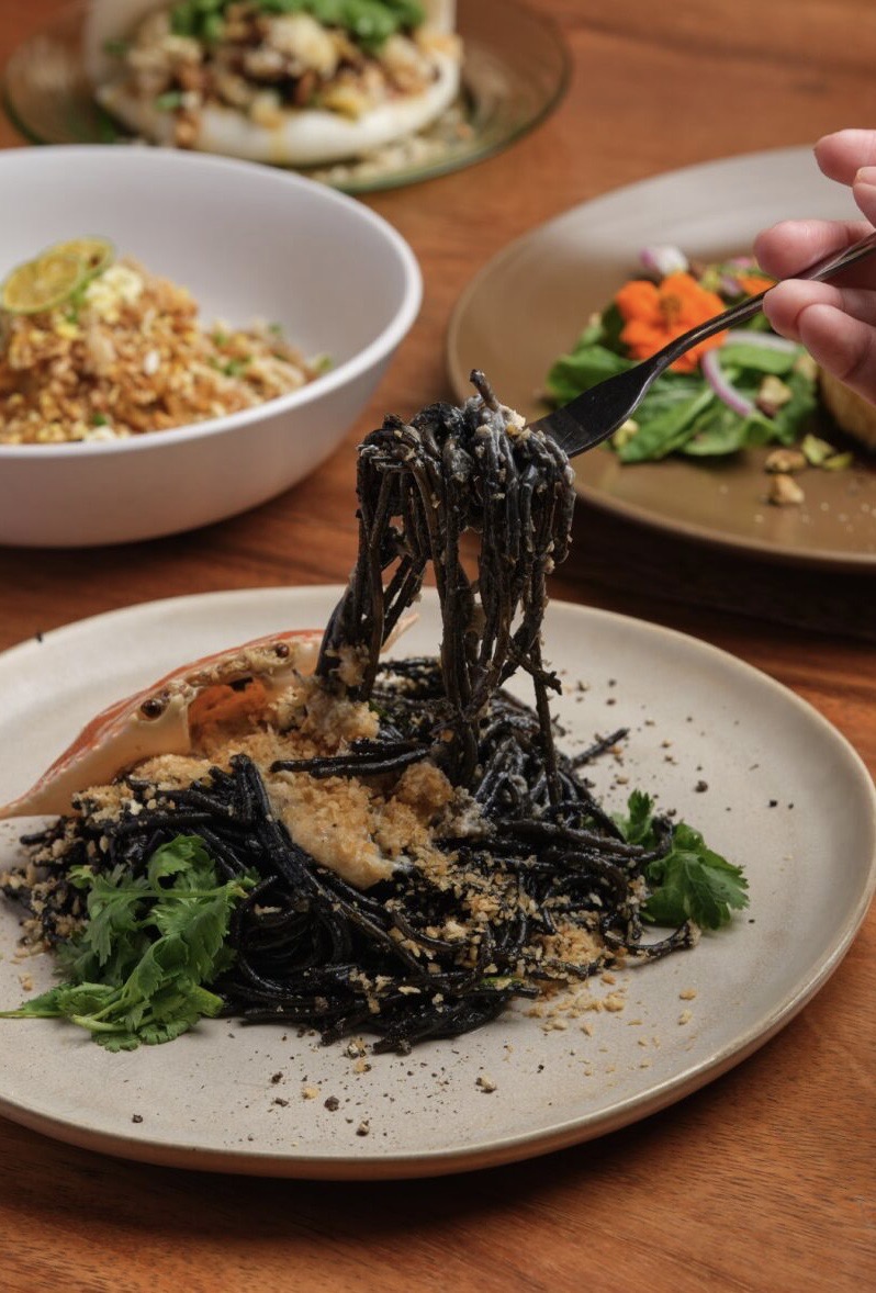 For those seeking something more robust, the Black Pepper Crab Noodles (Php 650) delivers bold flavors through black pepper squid ink sauce enriched with crab cream and finished with garlic cereal.