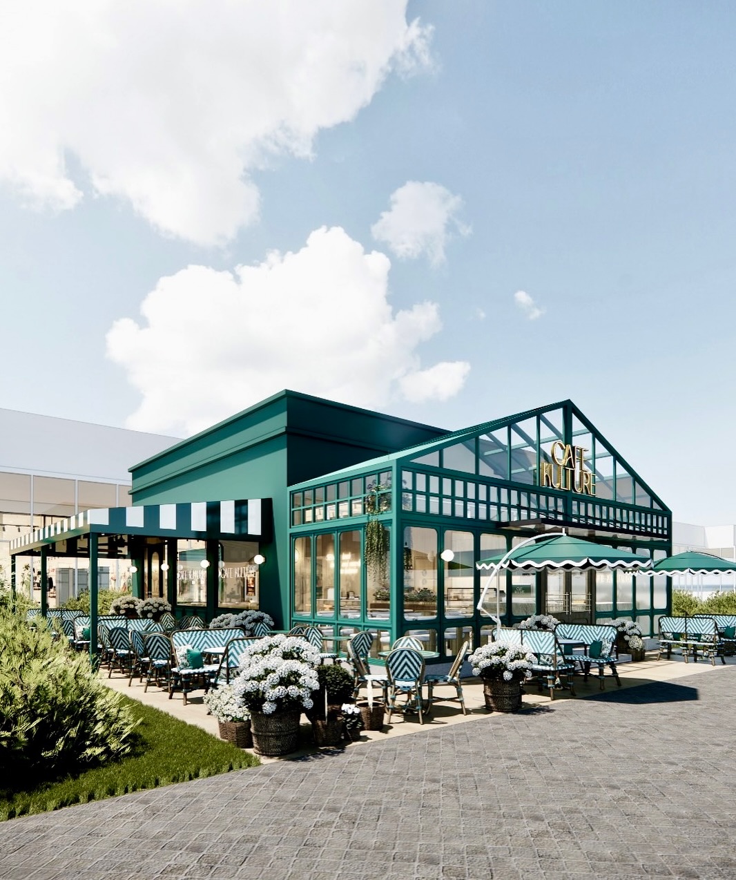 Designed as an expansive glasshouse masterpiece, the flagship café is wrapped in lush greenery and florals, creating a bright and inviting space ideal for brunch dates, casual meetings, and leisurely meals throughout the day.