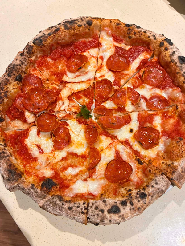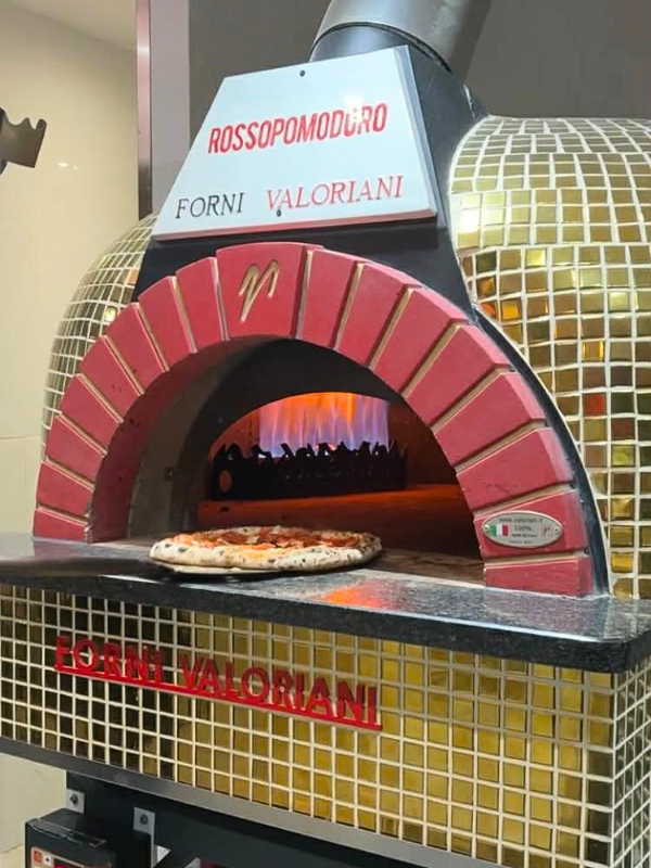 The dough is made in-house, while key ingredients are sourced from Italy, combining high-quality Italian brands with fresh produce. Each pizza is then cooked in a brick oven at high temperature for approximately 90 seconds.