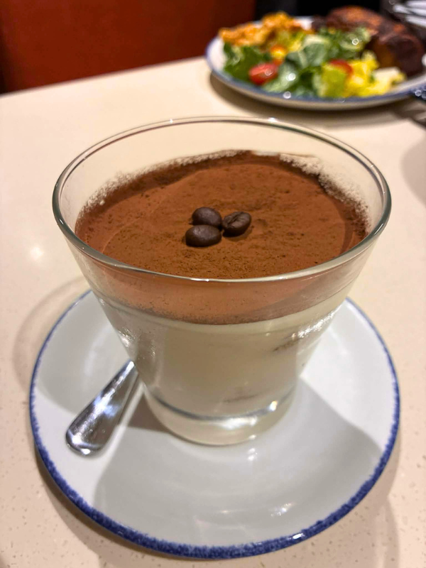 To end the meal on a sweet note, the Tiramisu is a fitting final treat, with its layers of espresso-soaked biscuits and velvety mascarpone cream finished with a dusting of cocoa.