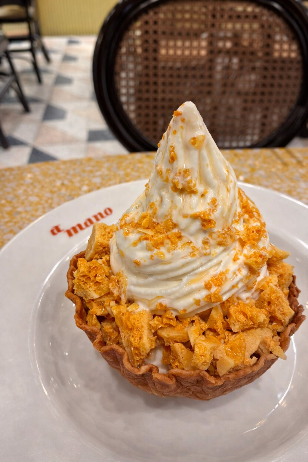 To end on a sweet note, the Honey & Honey Comb Burrata Soft Serve offers a creamy, velvety treat elevated by the natural sweetness of honey and the delightful texture of honeycomb. Trying it with the housemade waffle bowl is also recommended, as it adds a slightly salty, crisp contrast that pairs beautifully with the sweetness and creaminess of the burrata soft serve.
