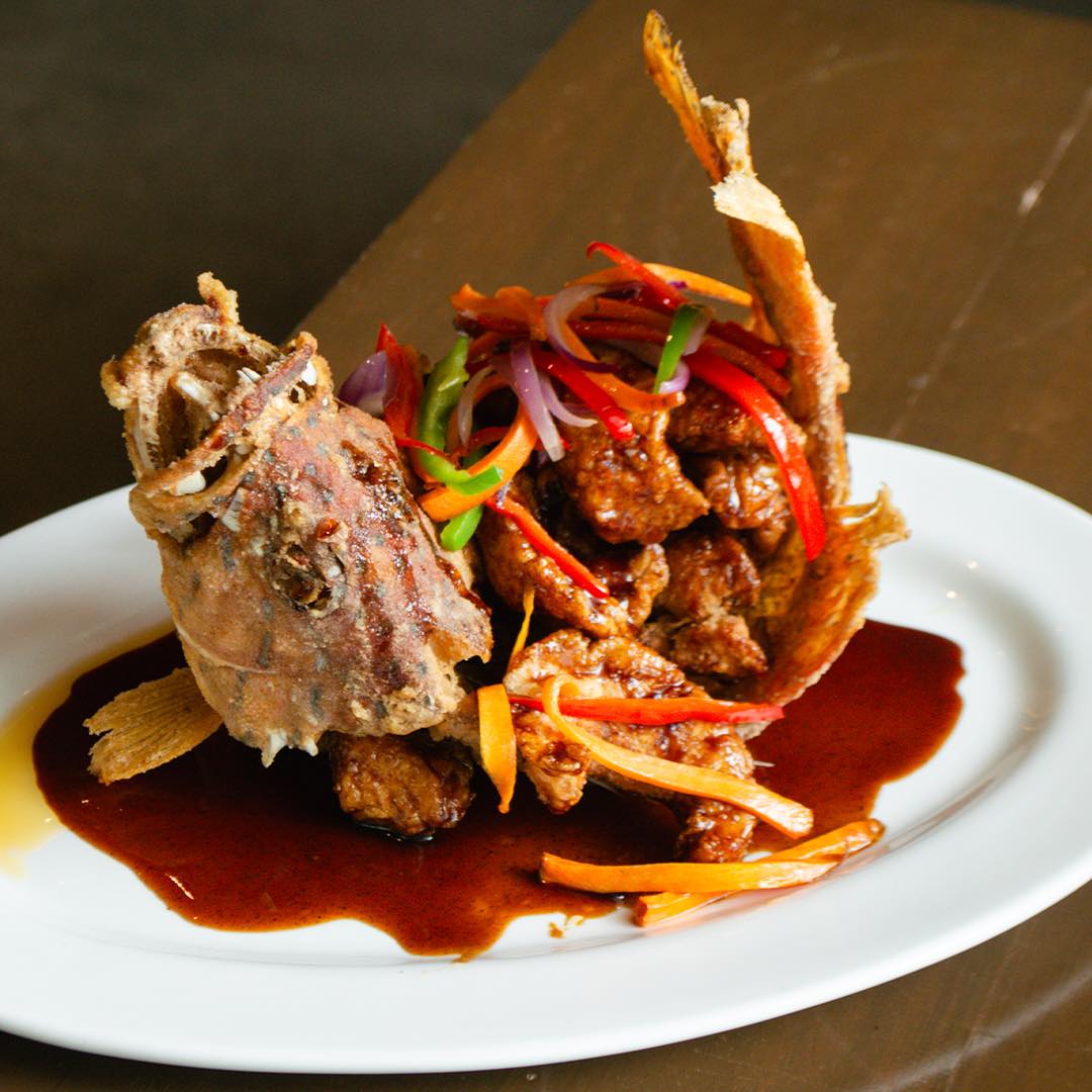 Seafood is equally considered, as seen in the Escabeche, a crispy lapu-lapu set against vegetables and a sweet tomato sauce that balances crunch and tang.