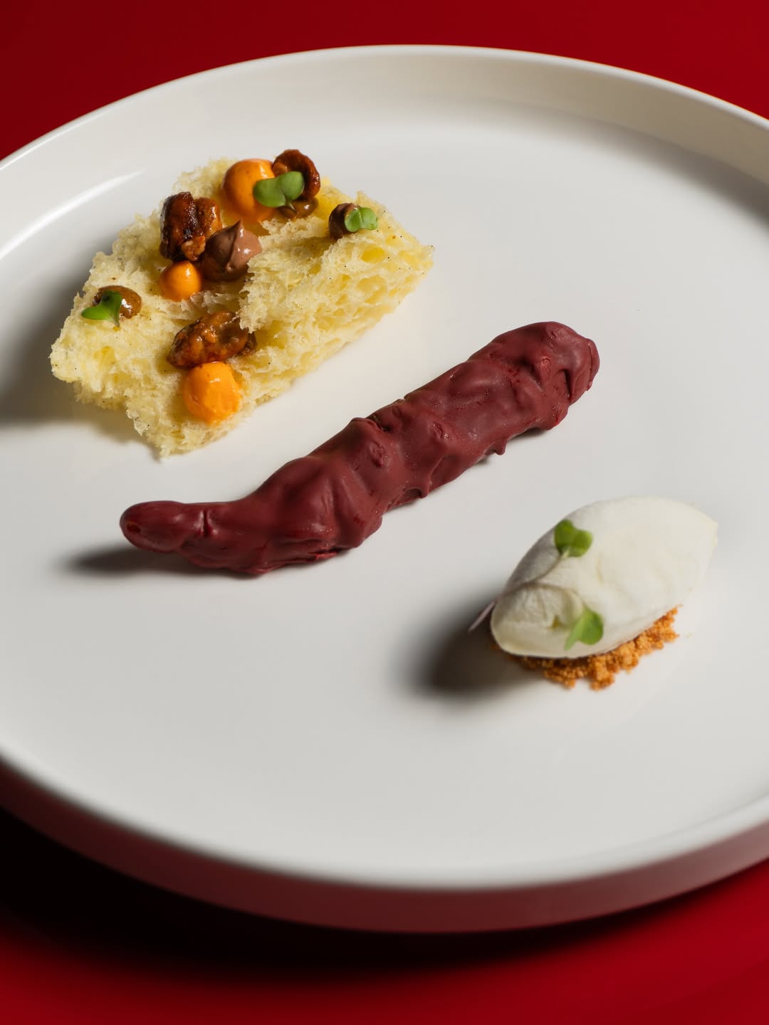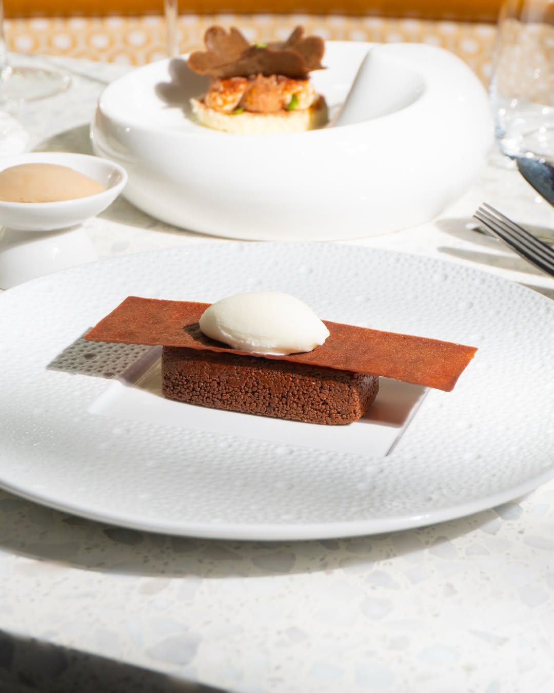 Meanwhile, Chocnut—available à la carte—reimagines a Filipino childhood favorite with hazelnut chocnut, banana caramel, feuilletine crunch, cacao tuile, and carabao milk gelato. Familiar, nostalgic, and unexpectedly refined.