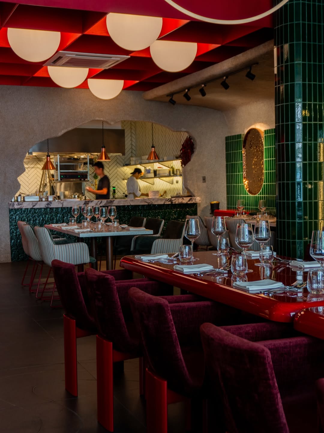 On the menu, the dialogue between cultures becomes tangible. The Cacio e Pepe is layered with borracho cheese, coconut cream, tuyo crumbs, and parmigiano gelato—playing with temperature and texture, delivering hot and cold in the same bite while balancing flavors that feel familiar yet entirely new.
