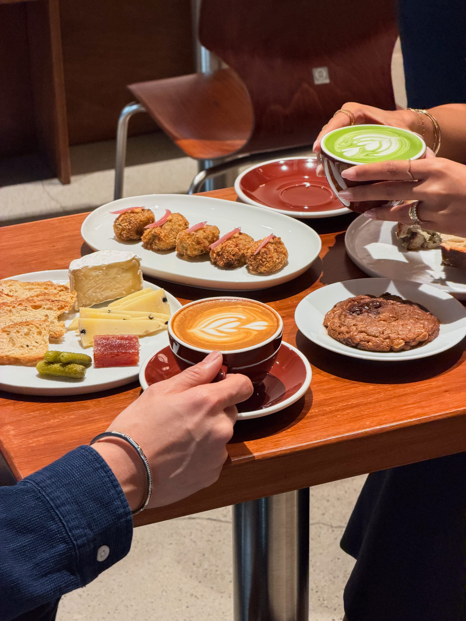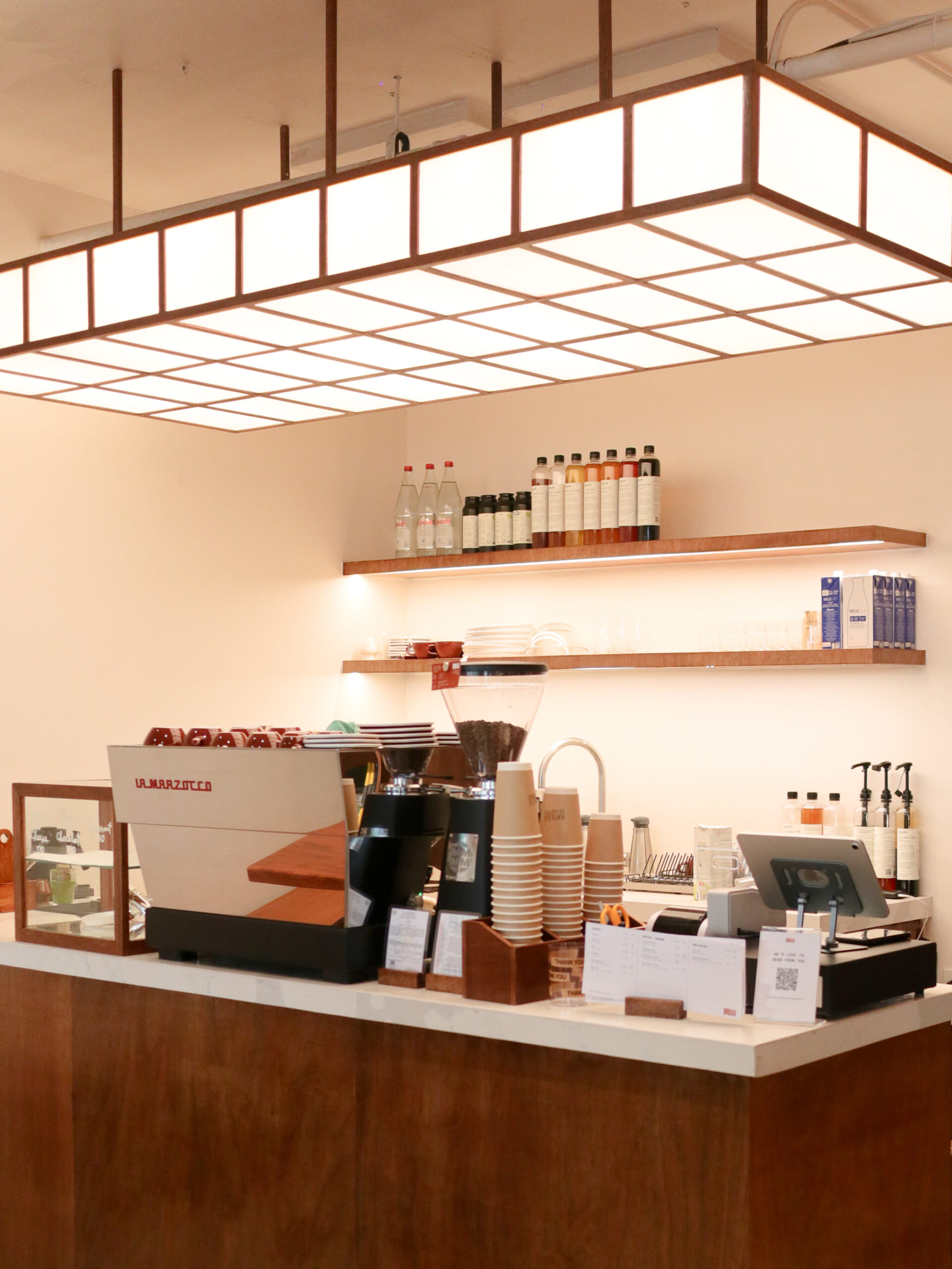 Built with intention, the space was personally designed by the founders, who hand-selected each piece of wood and marble used in the interior. A large paper lantern anchors the café, filling the room with warmth and creating a calm, inviting atmosphere that encourages lingering.