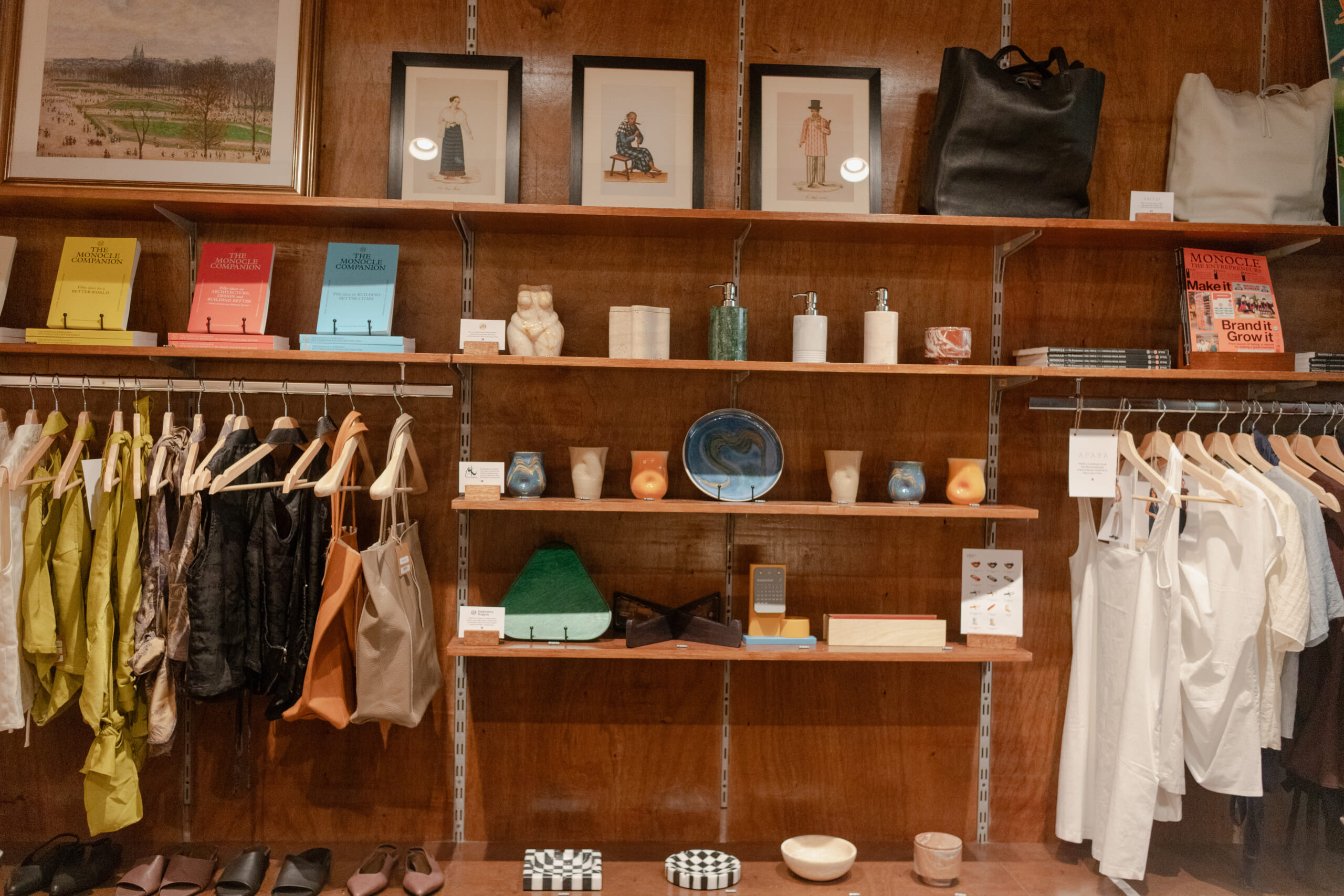 Beyond food and drink, Moai’s shelves showcase a curated mix of lifestyle pieces—from Monocle publications and art prints by Musée Joli to clothing, jewelry, and handcrafted homeware designed to spark curiosity and conversation.