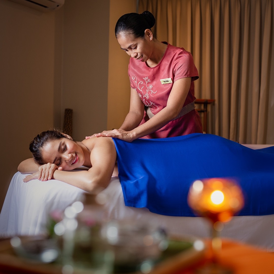 The spa’s serene environment—characterized by soft lighting, earth-toned interiors, and the gentle sound of waves—sets the stage for tranquility.